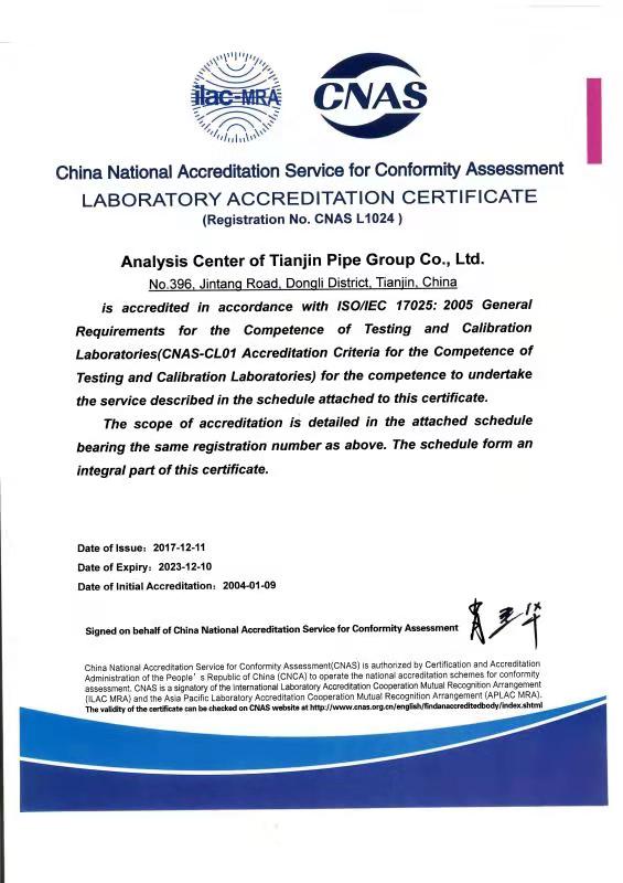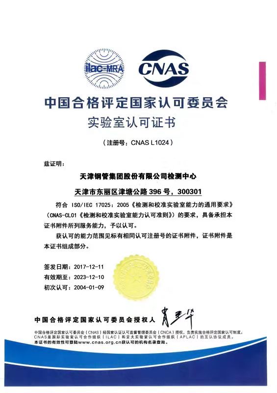 CNAS證書就是企業出具的材質單得到國家評定認可,檢測設備,以及檢測結果完全標準的一個證明,這個知識可以提醒你所買的無縫鋼管是不是廠家出局的證明有效,和屬實的材料證明,天津鋼管集團股份有限公司的天津大無縫鋼管廠出具的材質單完全符合材料的各項元素化驗。天津無縫鋼管廠報道www.m.yanuohk.com